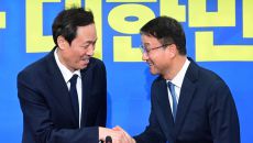 [포토] 우상호 청와대 정무수석과 인사하는 한병도 신임 원내대표