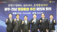 (나주=뉴스1) 김태성 기자 = 12일 전남 나주 동신대 전남연구원 회의실에서 열린 대한민국 제1호 통합 광역 지방정부 출범을- 2026-01-12 15:00