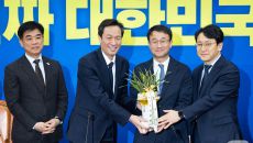 한병도 민주당 신임 원내대표, 우상호 정무수석 접견