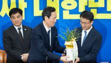 이재명 대통령의 축하 난 전달하는 우상호 정무수석