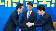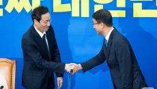 민주당 신임 원내지도부 취임 축하하는 우상호 정무수석