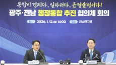 (나주=뉴스1) 김태성 기자 = 12일 전남 나주 동신대 전남연구원 회의실에서 열린 광주 전남 행정통합 추진 협의체 회의에서- 2026-01-12 14:58