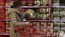 (서울=뉴스1) 구윤성 기자 = 12일 서울의 한 대형마트에서 인본인 관광객이 라면을 구입하고 있다. 농림축산식품부가 이날 발- 2026-01-12 14:33