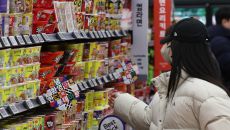 (서울=뉴스1) 구윤성 기자 = 12일 서울의 한 대형마트에서 외국인 관광객들이 라면을 구입하고 있다. 농림축산식품부가 이날- 2026-01-12 14:31