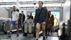 영국 런던에서 해마다 열리는 '바지 안 입고 지하철 타기' 행사에 올해 100여명이 참여해 화제다. AFP통신은 12일(현지시- 2026-01-12 20:14