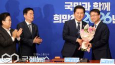 [이용우 기자] (서울=국제뉴스) 정청래 더불어민주당 대표와 한병도 원내대표가 12일 오전 서울 여의도 국회에서 열린 최고위원- 2026-01-12 13:14