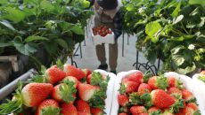 분주한 딸기 수확