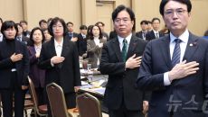 고용노동부 산하기관 업무보고, 국민의례하는 김영훈 장관