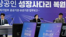 (세종=뉴스1) 김기남 기자 = 한성숙 중소벤처기업부 장관이 12일 세종시 정부컨벤션센터에서 열린 산하기관 업무보고에서 모두- 2026-01-12 12:32