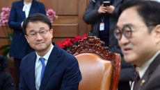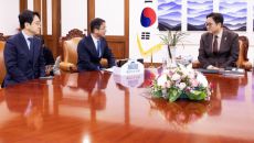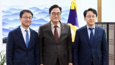 [서울=뉴스핌] 정일구 기자 = 우원식 국회의장(가운데)이 12일 오전 서울 여의도 국회 의장실에서 한병도 더불어민주당 신임- 2026-01-12 11:34