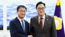 [서울=뉴스핌] 정일구 기자 = 우원식 국회의장(오른쪽)이 12일 오전 서울 여의도 국회 의장실에서 한병도 더불어민주당 신임- 2026-01-12 11:34
