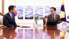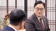 [서울=뉴스핌] 정일구 기자 = 우원식 국회의장(오른쪽)이 12일 오전 서울 여의도 국회 의장실에서 한병도 더불어민주당 신임- 2026-01-12 11:34