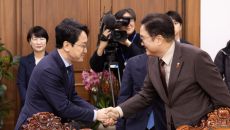 [서울=뉴스핌] 정일구 기자 = 우원식 국회의장(오른쪽)이 12일 오전 서울 여의도 국회 의장실에서 한병도 더불어민주당 신임- 2026-01-12 11:34