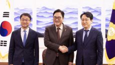 [서울=뉴스핌] 정일구 기자 = 우원식 국회의장(가운데)이 12일 오전 서울 여의도 국회 의장실에서 한병도 더불어민주당 신임- 2026-01-12 11:34