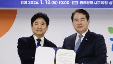(광주=연합뉴스) 여운창 기자 = 이정선 광주시교육감과 김대중 전남도육감은 12일 광주·전남 행정통합에 찬성하고 협력을 다짐하- 2026-01-12 11:21