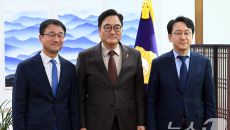 (서울=뉴스1) 유승관 기자 = 우원식 국회의장(가운데)이 12일 오전 서울 여의도 국회 의장실에서 한병도 더불어민주당 신임- 2026-01-12 11:21