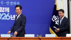 더불어민주당 정청래 대표와 한병도 신임 원내대표(오른쪽)가 12일 서울 여의도 국회에서 열린 최고위원회의에 참석하고 있다. ※- 2026-01-12 11:06