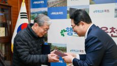 [옥천=뉴시스]연종영 기자 = 충북 옥천군은 12일 6·25 참전 유공자 고 송재남 하사의 자녀(장남 송완영씨 부부)에게 화랑- 2026-01-12 11:05
