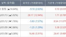 [장중수급포착] 유진로봇, 기관 14일 연속 순매수행진... 주가 +14.64%
