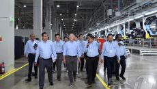 (서울=뉴스1) = 정의선 현대차그룹 회장이 지난 12일(현지시간) 기아 인도 아난타푸르공장 임직원들과 함께 생산 라인을 점검- 2026-01-14 09:31