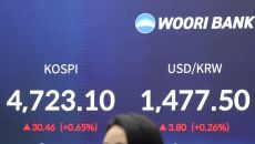 (서울=뉴스1) 황기선 기자 = 코스피 지수가 사상 처음으로 4700선을 돌파한 14일 오후 서울 중구 우리은행 본점 딜링룸- 1시간전