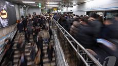 (서울=뉴스1) 김성진 기자 = 서울 시내버스 총파업 이틀 째인 14일 서울 중구 충무로역이 출근길 시민들로 붐비고 있다. 서- 12시간전