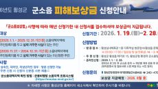 [스포츠서울ㅣ김기원기자]횡성군은 오는 19일부터 내달 28일까지 ‘2026년 군용기 소음피해 보상금’ 신청을 접수한다고 밝혔다- 2026-01-14 08:10