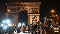 13일 프랑스 파리에서 농민들이 트랙터를 몰고 개선문을 통과한 뒤 샹젤리제 거리를 행진하고 있다. 이날 프랑스 전역에서 모인- 20시간전