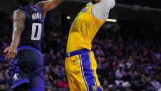 LA 레이커스의 잭슨 헤이스(오른쪽)가 13일 미국프로농구(NBA) 새크라멘토 방문경기에서 말릭 몽크의 수비를 제치고 덩크슛을- 20시간전