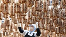영하권 날씨가 거듭되는 가운데 13일 경기 안성 서일농원에서 주렁주렁 매달려 말라가는 메주를 한 직원이 살펴보고 있다. 14일- 23시간전