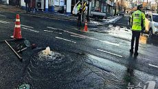 원주시 학성동 상수관로 파열…"단수 가능성·도로 결빙 주의"