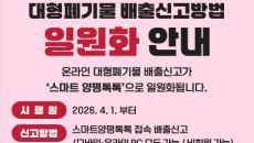 양평군(군수 전진선)은 오는 4월 1일부터 주민 편의 증진과 행정 효율성 강화를 위해 온라인 대형폐기물 배출신고 시스템을 모바- 16시간전