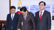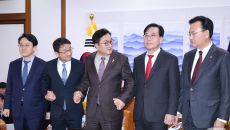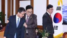 여야 원내대표와 손잡는 우원식 의장