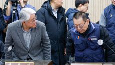 (서울=뉴스1) 안은나 기자 = 김정환 서울시버스사업조합 이사장이 서울 시내버스 파업 이틀째인 14일 오후 영등포구 서울지방노- 2026-01-14 15:43