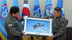 (서울=뉴스1) 국회사진기자단 = 우원식 국회의장이 14일 강원도 원주시 제8전투비행단을 위문 방문, 이긍규 8전투비행단장에게- 34분전