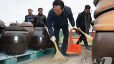 (당진=뉴스1) 유승관 기자 = 정청래 더불어민주당 대표가 14일 충남 당진시 백석올미마을기업을 방문해 장독 옮기기 작업을 하- 46분전