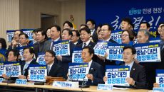 '충남·대전 행정통합' 손피켓 든 민주당 지도부