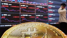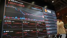 (서울=뉴스1) 이광호 기자 = 비트코인 가격이 9만5000달러선을 회복한 14일 오전 서울 서초구 빗썸라운지 강남본점 전광판- 23시간전