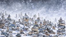 눈보라에도 끄떡없는 인제 백담사 돌탑