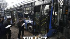 [더팩트 | 송호영 기자] 서울 서대문구 서대문역 사거리에서 시내버스가 차도를 넘어 NH농협은행 건물로 돌진하는 사고가 16일- 1시간전