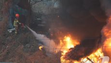 (서울=뉴스1) 김진환 기자 = 16일 오전 서울 강남구 개포동 구룡만을에서 불이나 출동한 소방대원이 불길 확산을 막고 있다.- 21분전