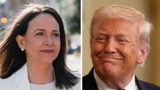 베네수엘라 야권 지도자 마리아 코리나 마차도가 15일(현지시간) 지난해 받은 노벨평화상 메달을 트럼프 미국 대통령에게 전달한- 21분전