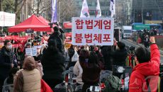 尹 '체포방해' 1심 징역 5년 선고에 구호 외치는 지지자들