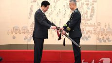 이재명 대통령, 어창준 수도방위사령관 삼정검 수치 수여