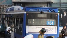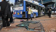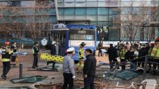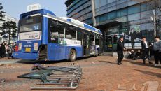 농협은행 본점 들이받은 시내버스 '아수라장'
