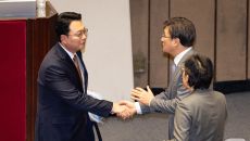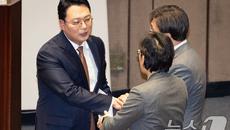 필리버스터 마친 천하람, 국민의힘 의원들과 인사