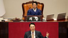 [이용우 기자] (서울=국제뉴스) 천하람 개혁신당 원내대표가 15일 국회에서 열린 본회의에서 '윤석열ㆍ김건희에 의한 내란ㆍ외환- 7시간전
