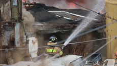 구룡마을 화재 진압하는 소방대원