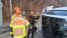 강릉 강동면서 테슬라 가드레일 들이 받고 전도…1명 사망·1명 경상