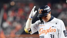 한화 김경문 감독, ‘수비하는 백호’ 조련 시동 “미트 두 개 가져와!”